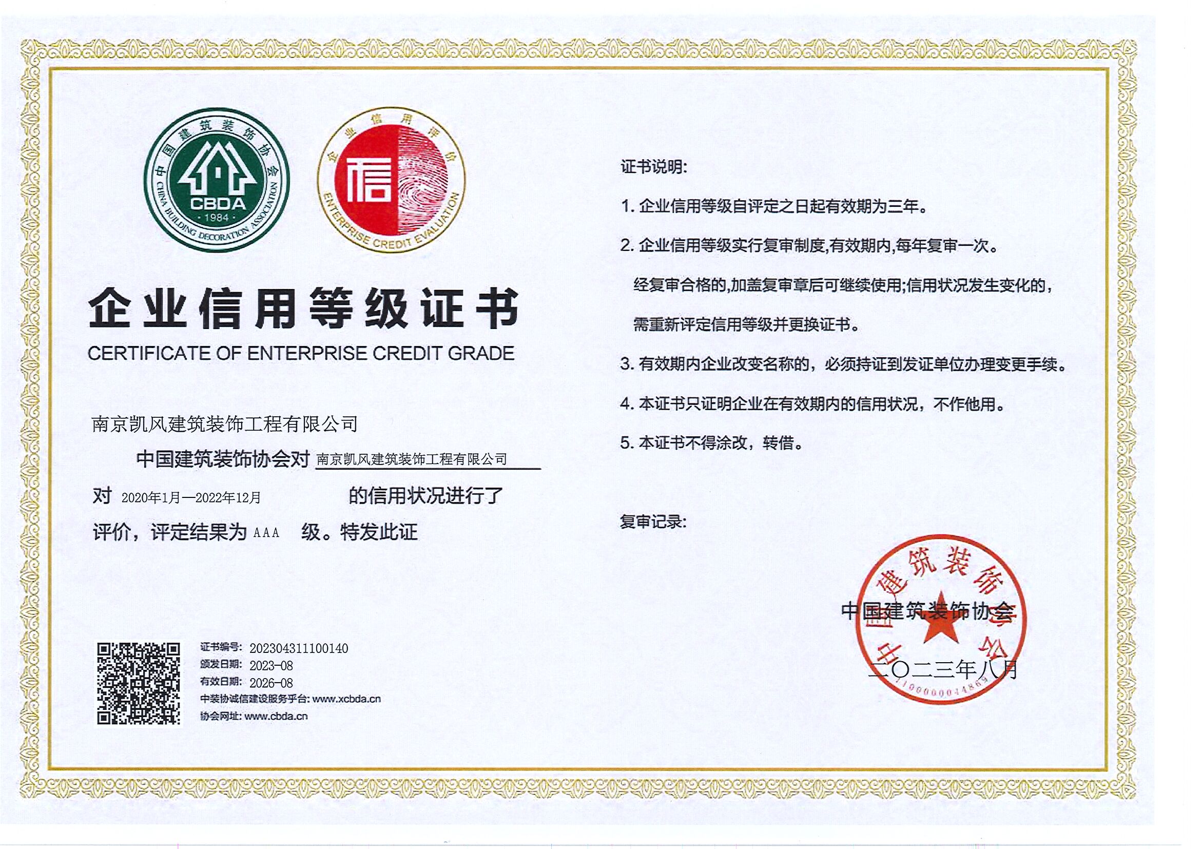 企業(yè)信用等級證書