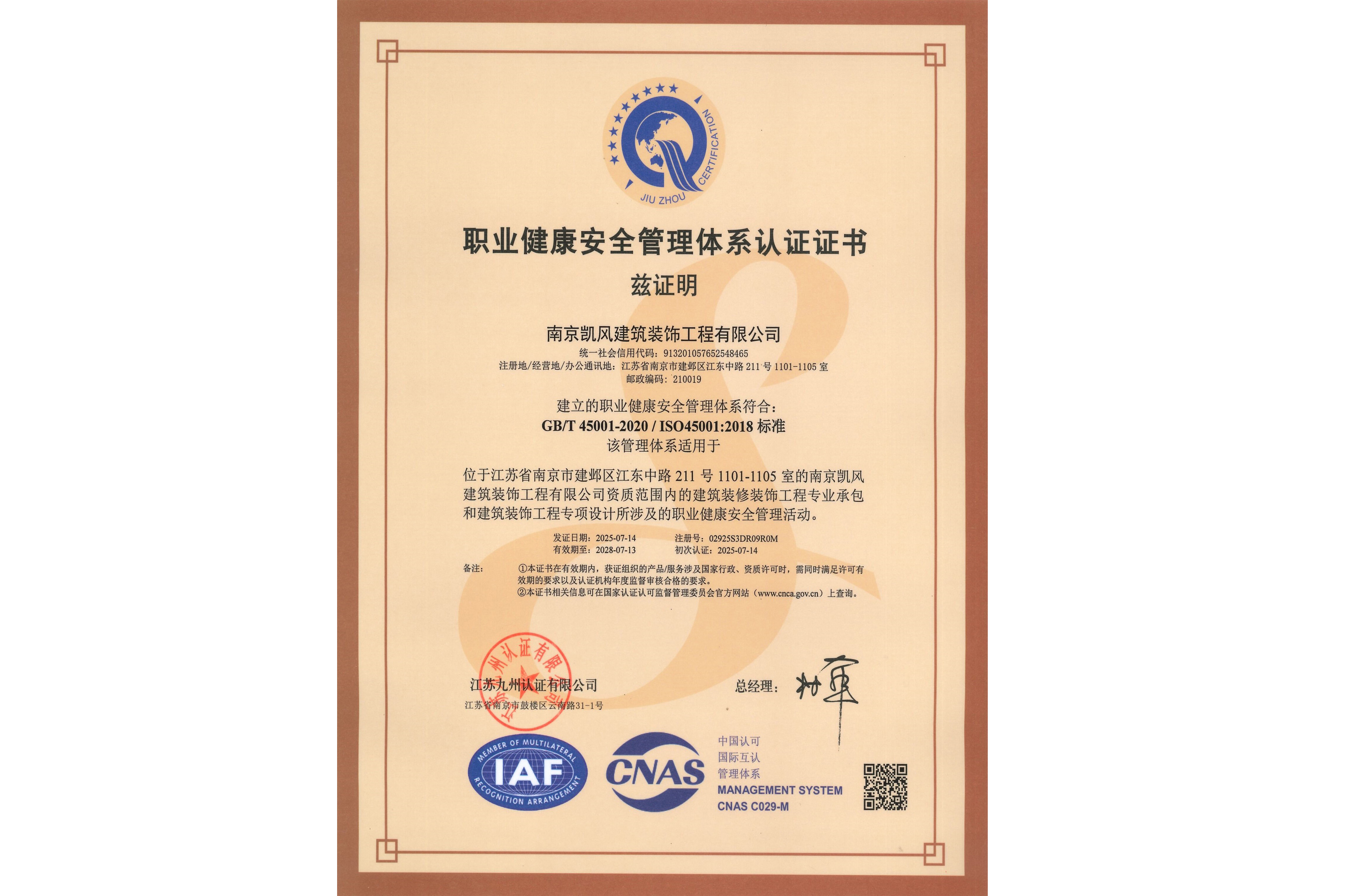 工程設計建筑裝飾工程專項甲級